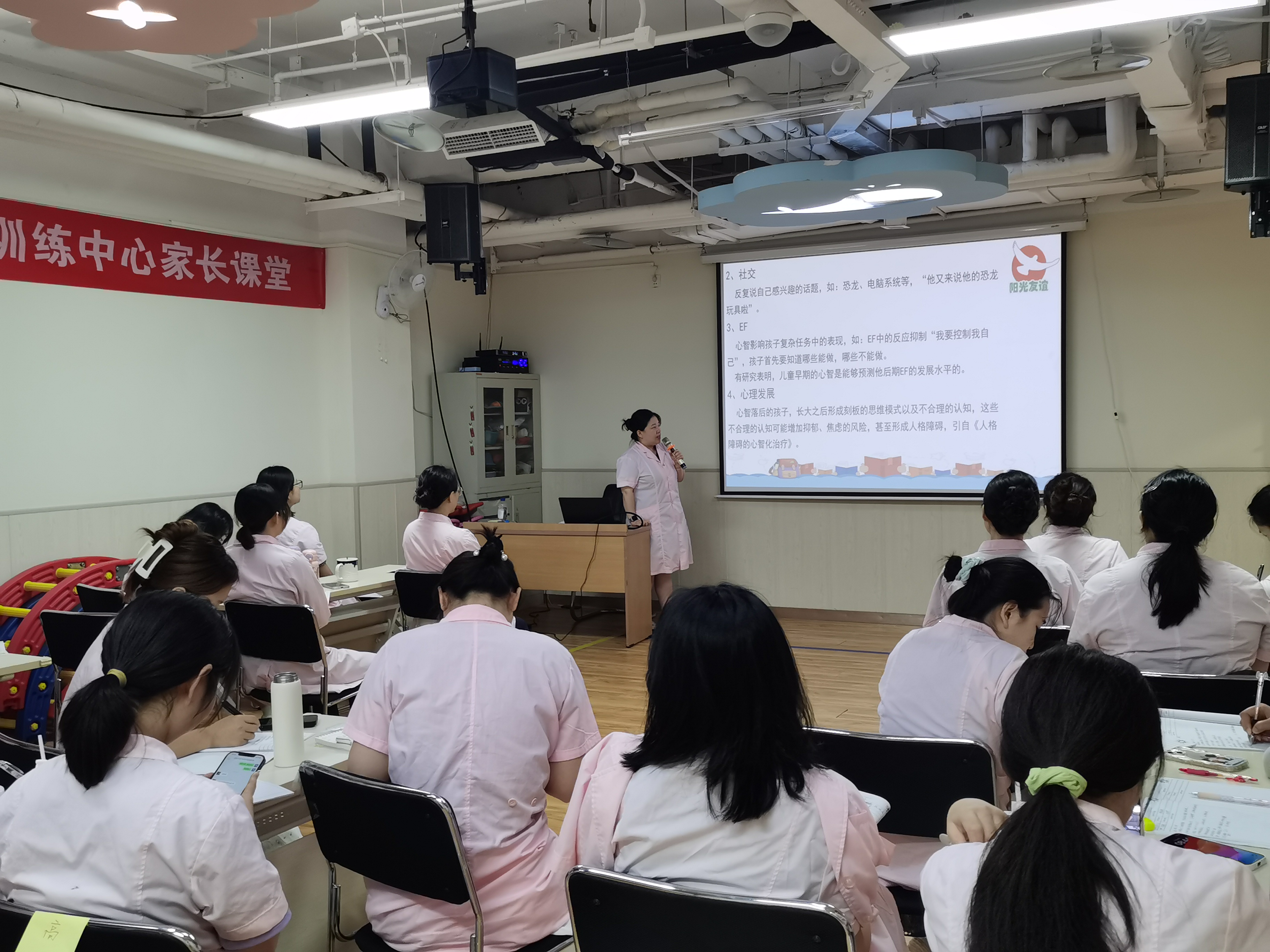 培训开始前,中心魏青云主任先动员讲话,嘱咐阳光友谊的教师们要不断学习,提升自我,帮助孩子们取得更大的进步。